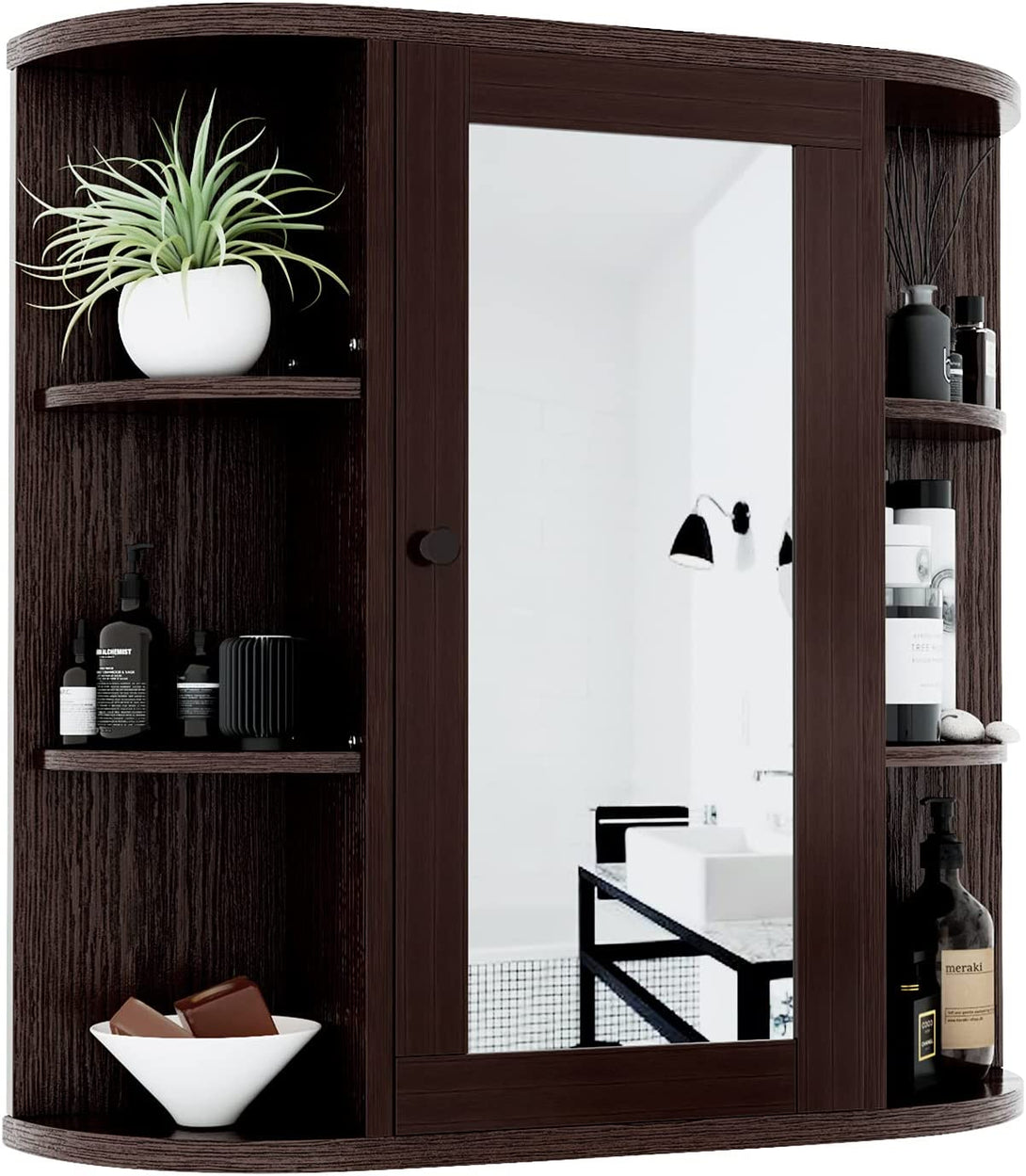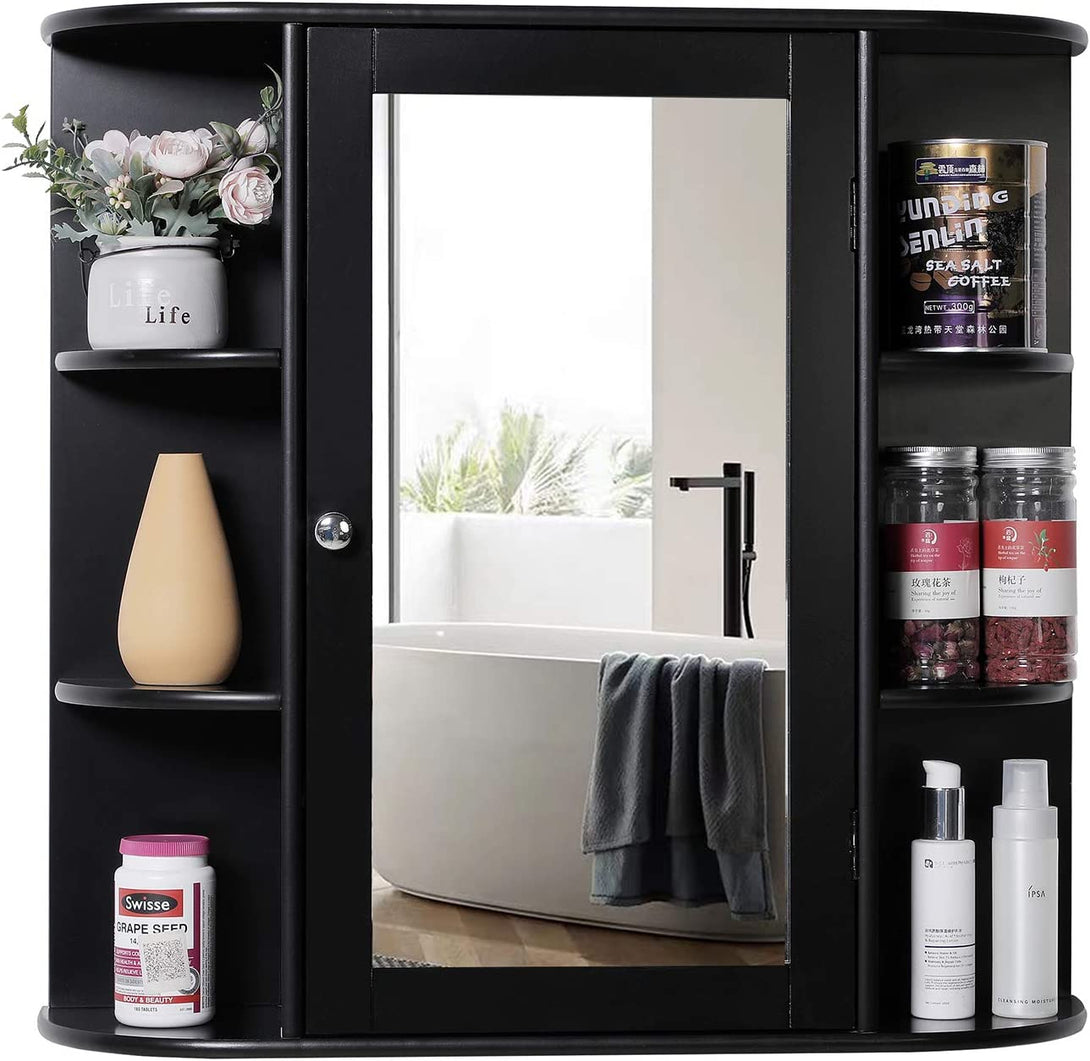 - PERFECT STORAGE CHOICE: Still anxious about taking a lot of time to find toiletries when needed? In 1 mirror cupboard, you can put mouthwash, skincare items, etc. 6 open shelves can make you quick access to your towels or other accessories. Layered and classified storage makes life easier