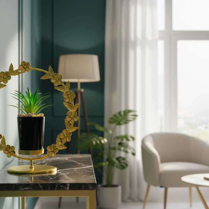 This eye-catching design combines nature and elegance, making it a perfect accent for desks, shelves, entryways, or coffee tables. The floral metalwork and perched bird add a touch of serenity and detail to any space.