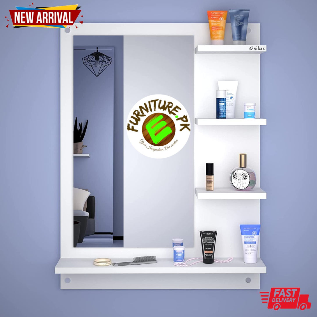 - Storage space - 4 Shelf with beautiful mirror, which can neatly store your cosmetics
