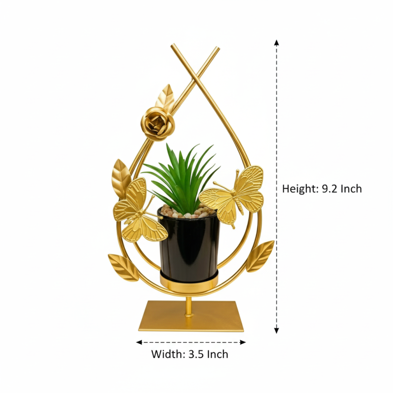 Golden Metal Butterfly & Floral Pot With Ceramic Plant