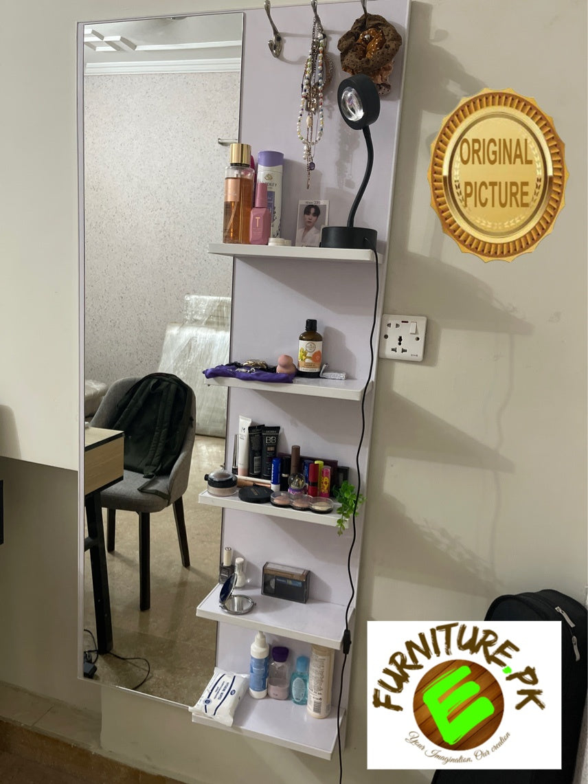 Longish Dressing Table ( H 60" x L 27" ) with Shelves, Mirrors and Hanging hooks