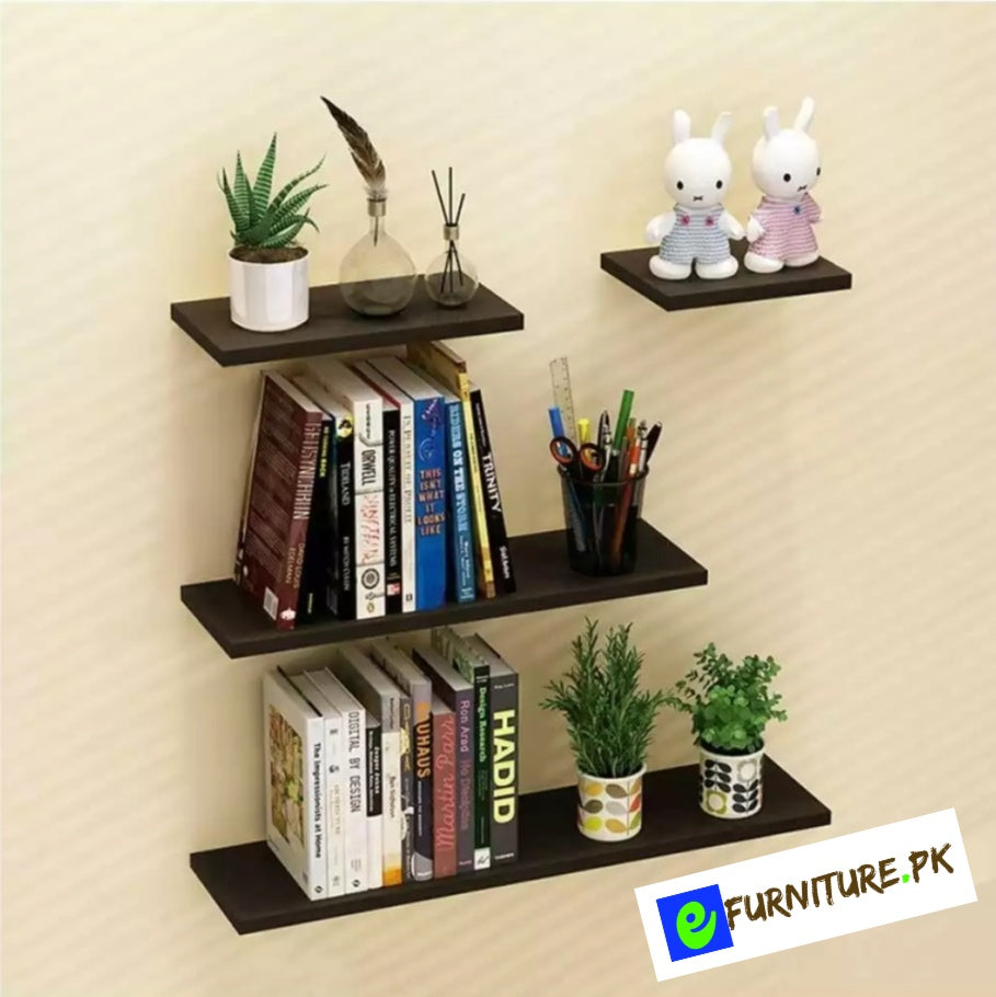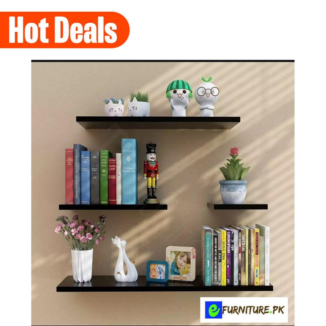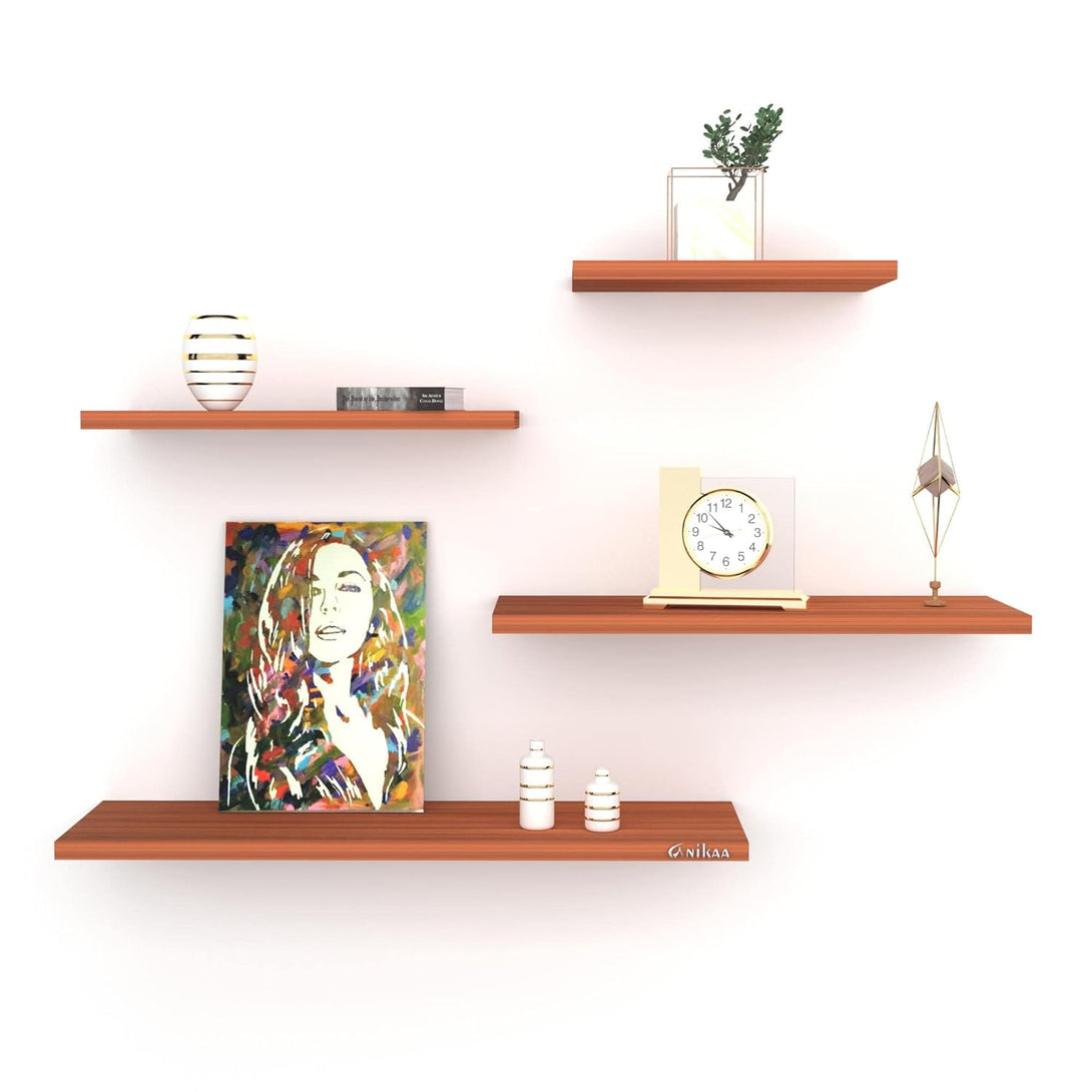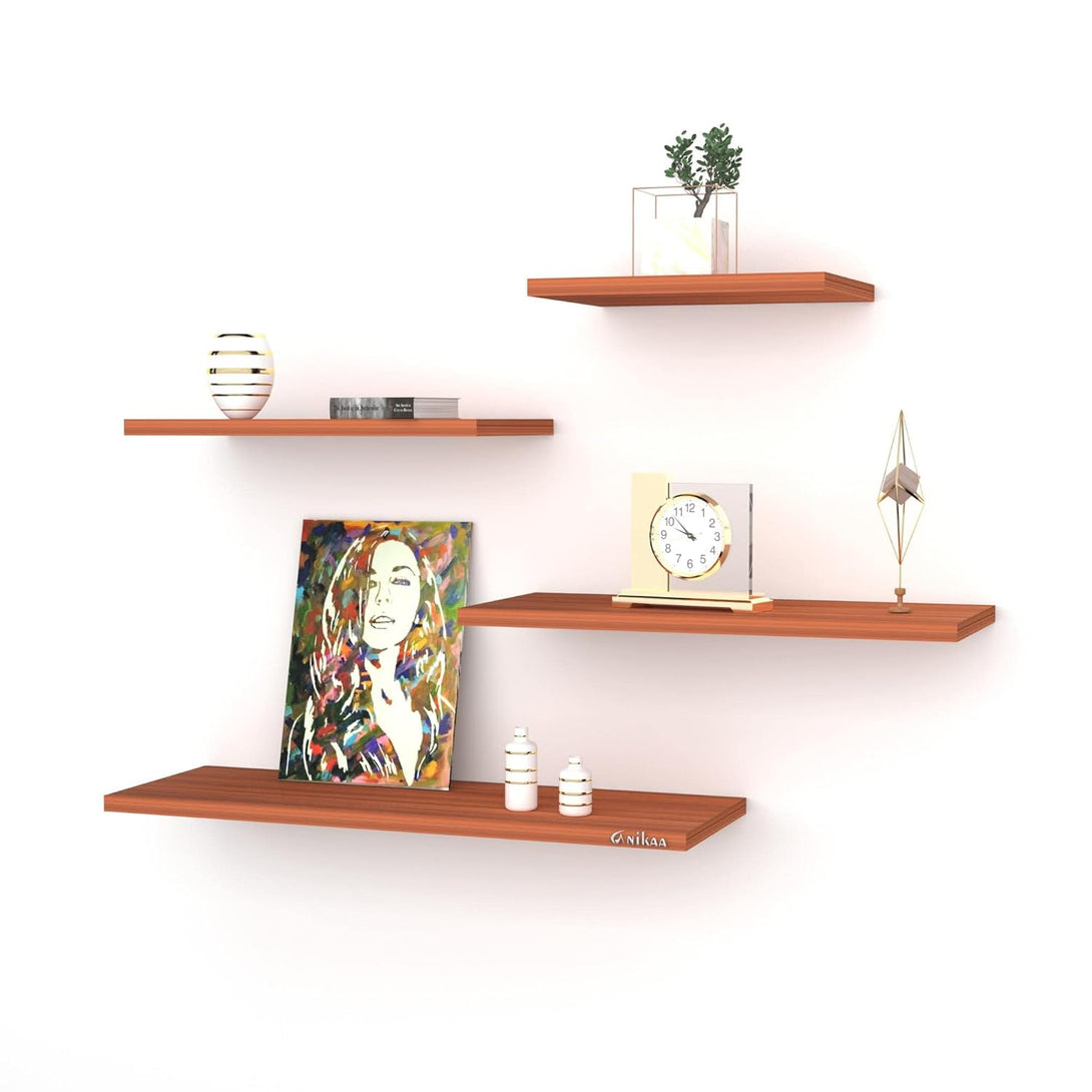 Set of 4 Flat Delightful Wall Mounted Book Shelf, wooden shelves, Storage Shelves