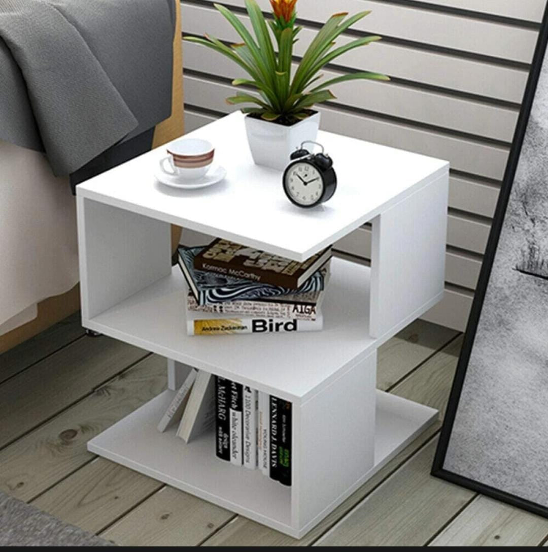 - FUNCTION - 3 Tier panel craft design which easy to storage personal accessories - Modern cubic nightstand shape makes it a great home decor | flat wood top perfect for placing plants | table lamp | book | makeup accessories