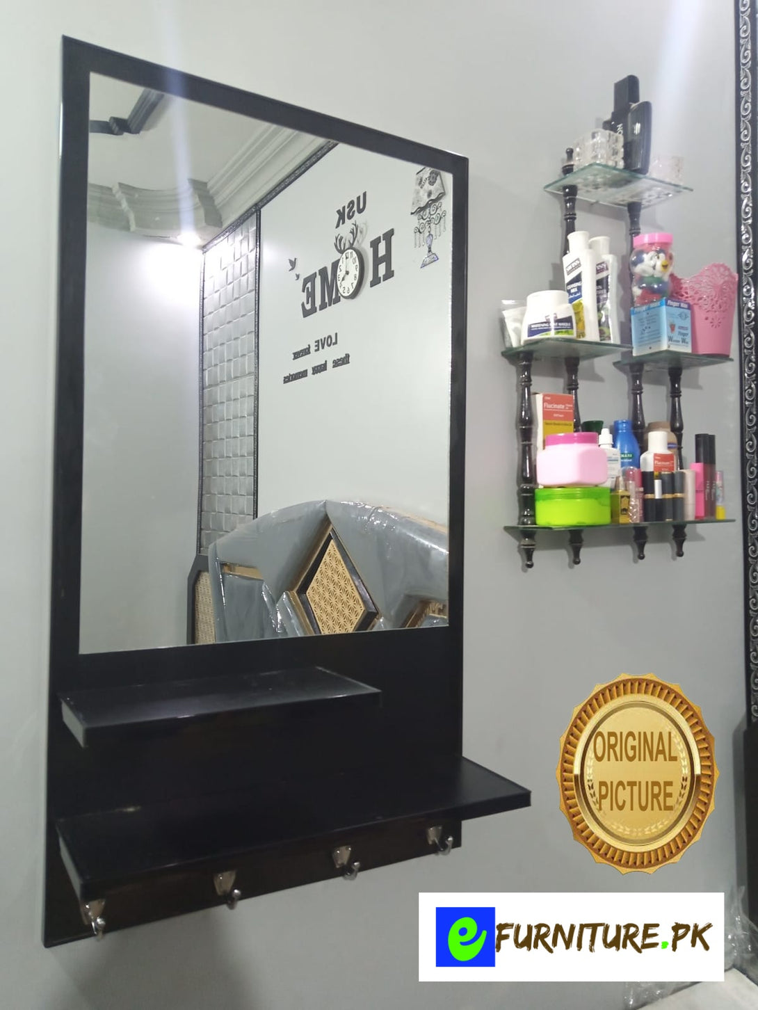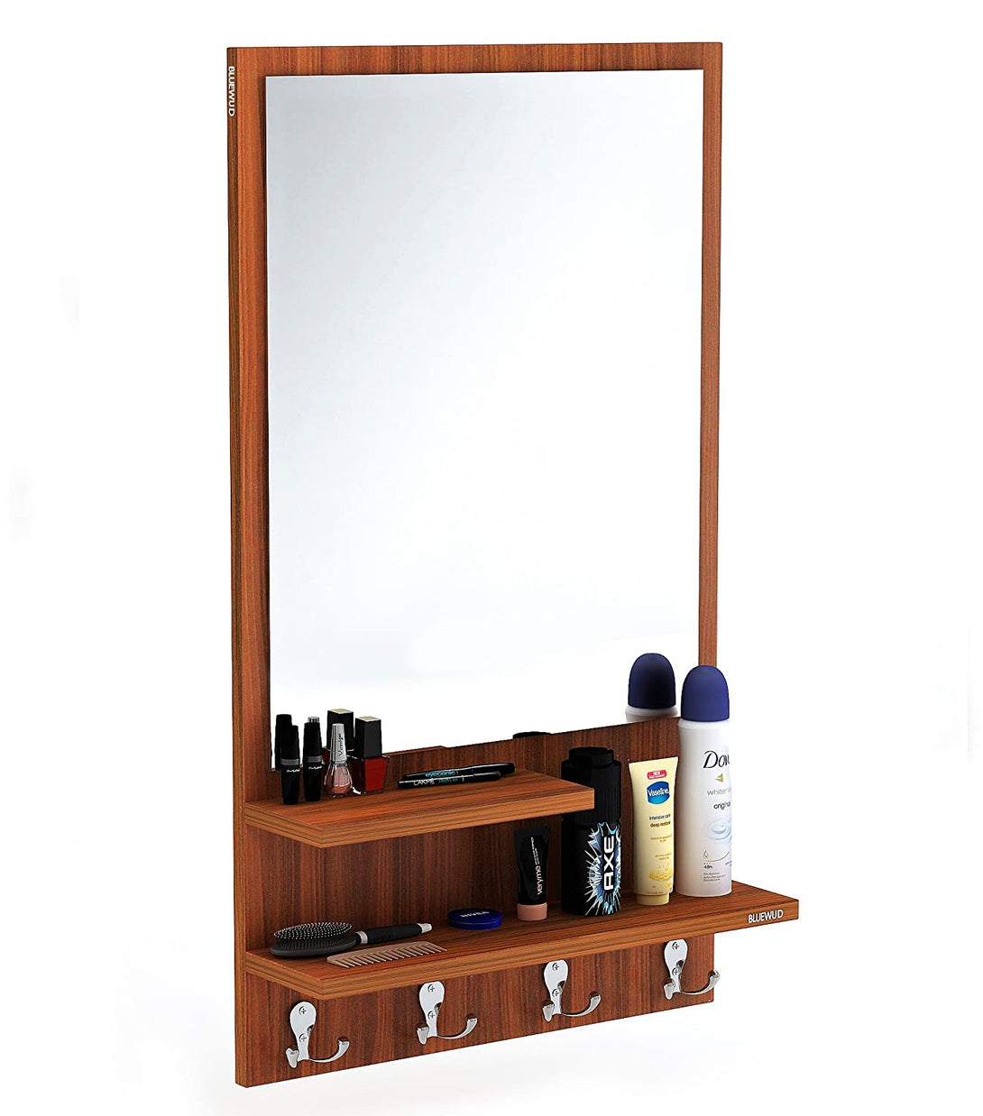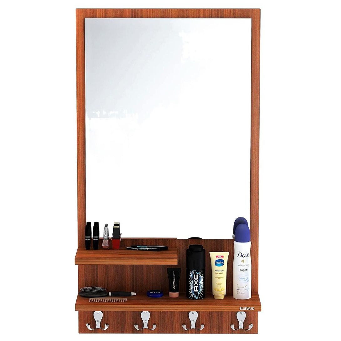 - Storage space - 2 Shelf and 3 Hanging Hooks with beautiful mirror, which can neatly store your cosmetics
