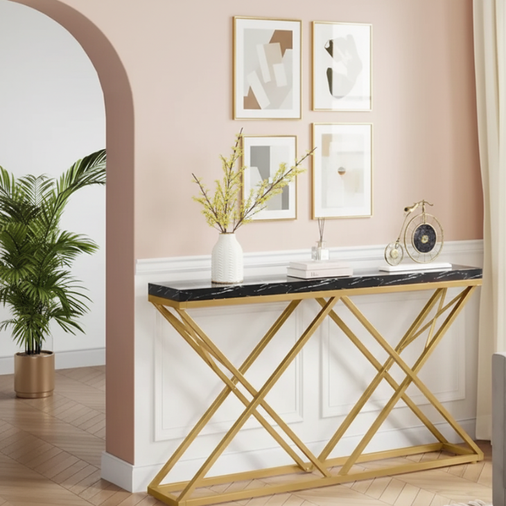 Elegant Look Black White Four Tier Console Table, Leave your guests mesmerized as you change the look of your room with Smartly designed coffee table which is more than just mere tables in the corner. The luxurious copper touch on the metal makes it an attractive statement in your living room, bedroom or study. Round and resilient marble on the top is more like the cherry on the top which imparts that essential wholesome look to the table. These tables add an imperial look to your room and boost of charm. This accents tables will definitely create the right home accent you want, brighten up your space and impress your guests.